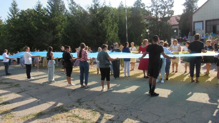 А потім всі присутні на заході розгорнули два великі синьо-жовті полотнища, які об’єднали в прапор України, символізуючи єдність українців.