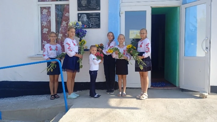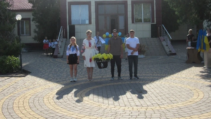 В селі Новомар’ївка Державний Прапор України підняли сільський голова Тамара Фесько, ветеран війни Микола Римбу та учні Новомар’ївського ліцею.