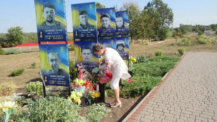 Сільський голова на Алеї пам’яті поклала квіти до світлин загиблого земляка Андрія Ковриженка, в день річниці його пам’яті, який загинув 22 серпня 2024 року.