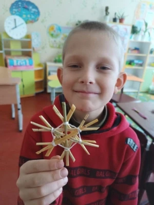 Справжню магію українського Різдва продовжили опановувати учні 2 та 6 класів, які на чолі з Гончаровою Катериною Сергіївною та Столяр Дар’єю Василівною завітали до творчої світлиці ліцею. Цього разу головною героїнею майстер-класу стала золотава солома — символ добробуту та сонячної енергії. Діти вчилися приборкувати цей тендітний матеріал, створюючи витончені сніжинки та грайливих пташок. Кожна солом’яна деталь, поєднана дитячими руками, перетворювалася на символічну прикрасу, яка здатна наповнити оселю затишком і вірою в диво.