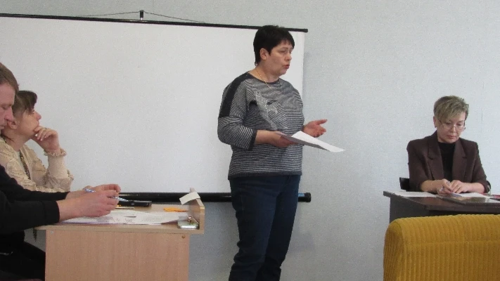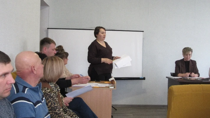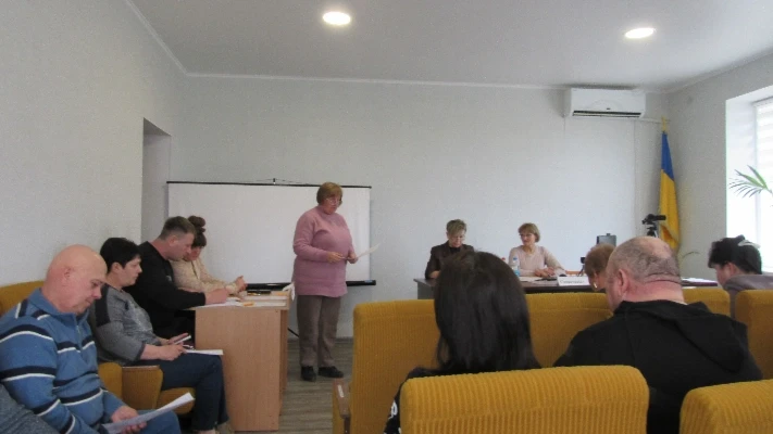 З питання організації та проведення громадського обговорення щодо реорганізації, ліквідації, перепрофілювання (зміни типу) закладів освіти Новомар’ївської сільської ради Вознесенського району Миколаївської області виступила начальник відділу освіти, молоді, спорту, культури та туризму Світлана Гірієнко.