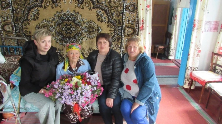 В цей день очікувала вона на представників влади, які завітали привітати ювіляршу, а це - Новомар’ївський сільський голова Тамара Фесько, перший заступник сільського голови Наталія Глаголенко та староста Григорівського старостинського округу Олена Хома.