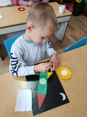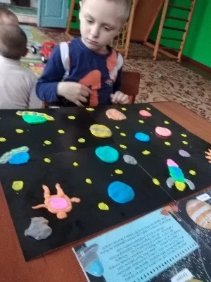 У Ганнівському закладі дошкільної освіти вивченню цієї теми також був присвячений цілий тиждень. Робота з вихованцями була організована через різні форми роботи: бесіду “Космос: близький чи далекий?” (навіщо людям польоти в космос, яку інформацію ми отримуємо завдяки штучним супутникам?); гру - дослідження “Яким має бути космонавт?” (діти називали риси характеру космонавтів, доводили, чому та чи інша риса важлива); гру “Збираємося у подорож” (малята разом з вихователем ставали “командою ракети”, обговорювали, що варто і чого не варто брати в космічну подорож, розподіляли обов’язки між членами екіпажу); досліди “Як ракета злітає у космос?” (за допомогою повітряних кульок); створення аплікацій («Ракета», «Космонавт», «Наша планета Земля», «Космос та зірки»), малювання, конструювання та ліплення з уяви “Космічна подорож”, перегляд презентацій та мультфільмів. Діти будували космічні апарати за власними проєктами, поки що з пластиліну та конструктора, але хто знає, чи не стане для когось з них побудова космічних кораблів майбутньою професією?