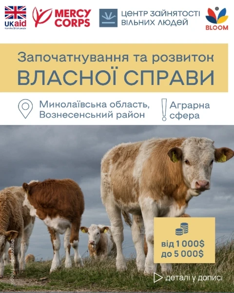 ВПО та місцеві мешканці Вознесенського району Миколаївської області можуть отримати від $1000 до $5000 (у гривнях) на запуск або відновлення бізнесу в агросфері