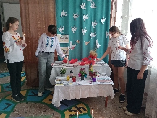 В Новомар’ївському ліцеї було проведено урок-екскурс для учнів 11 класу, круглий стіл «Ціна свободи», оформлено тематичну виставку «Символи мужності».