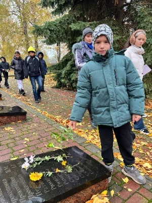 Учні та педагоги Миролюбівської гімназії вшанували пам’ять воїнів, які боролися за звільнення України, поклавши квіти до Меморіалу Слави.