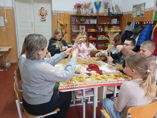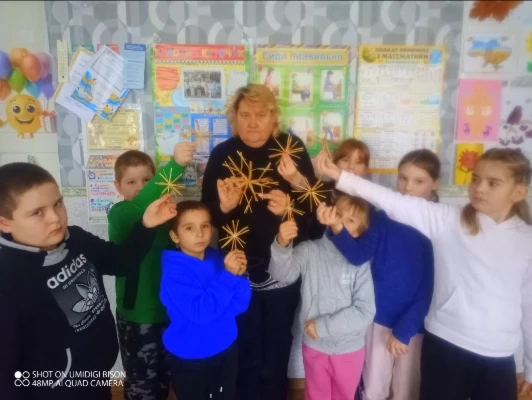 Для проведення майстер-класу із виготовлення дідуха діти заздалегідь підготували природні матеріали: колоски пшениці й жита, калину та сухоцвіти. Разом із вчителем Валентиною Фабриковою вони крок за кроком створювали цей різдвяний символ. Під час роботи педагог розповіла дітям про мету майстер-класу: зберегти українські традиції та показати, що дідух є символом добробуту, миру та родинного тепла. Учні дізналися про призначення дідуха в українській культурі та чому він завжди є важливою частиною різдвяних свят.