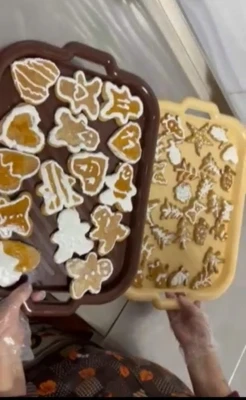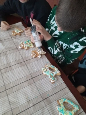 Творчий марафон продовжився новою "смачною" подією — виготовленням глазурованого печива, яке учні 11 класу готували як особливий подарунок до свят. Мама, Гвоздецька Вікторія Анатоліївна, розповіла про секрети приготування тіста для смаколиків. І вже потім всі разом поринули в атмосферу зимової казки, власноруч створюючи смачні та красиві солодощі.