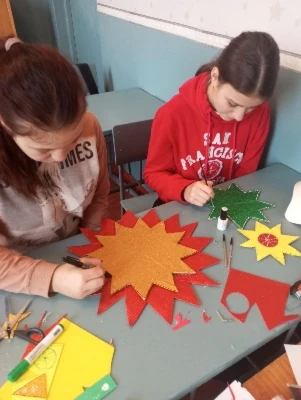 Дев’ятикласники разом із класним керівником занурилися у творчість і виготовили головний символ свята — Різдвяну зірку! Це було не просто заняття, а справжня майстерня радості. Картон, блискітки, клейові пістолети й трішки натхнення — і ось у наших руках сяє така неймовірна краса! Кожен промінець наповнений дитячим старанням та вірою в дива.