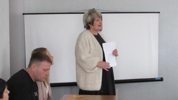 Перший заступник сільського голови Наталія Глаголенко проінформувала присутніх про ініціювання та початок розробки проєкту Статуту Новомар’ївської територіальної громади та утворення відповідної робочої групи.