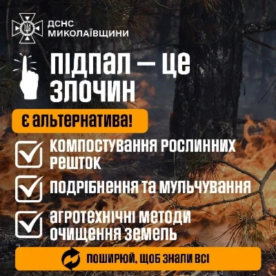 Також зосереджуємо Вашу увагу, що за данні правопорушення передбачені санкції Кримінальним кодексом України, а саме: ст. 245 «Знищення або пошкодження об’єктів рослинного світу», ст. 270 «Порушення встановлених законодавством вимог пожежної або техногенної безпеки», ст. 113. «Диверсія».